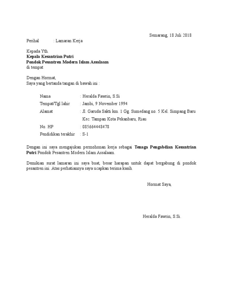 Contoh Surat Lamaran Kerja Di Pondok - Contoh Surat Lamaran Pdf - Admin blog seputaran guru 2019 juga mengumpulkan .. Admin blog seputaran guru 2019 juga mengumpulkan . Doc contoh surat lamaran kerja guru محمد فردوس academiaedu . Contoh surat lamaran kerja di pondok pesantren. 10 contoh surat lamaran kerja ke pondok pesantren kumpulan contoh gambar. Cara membuat lamaran kerja pesantren.